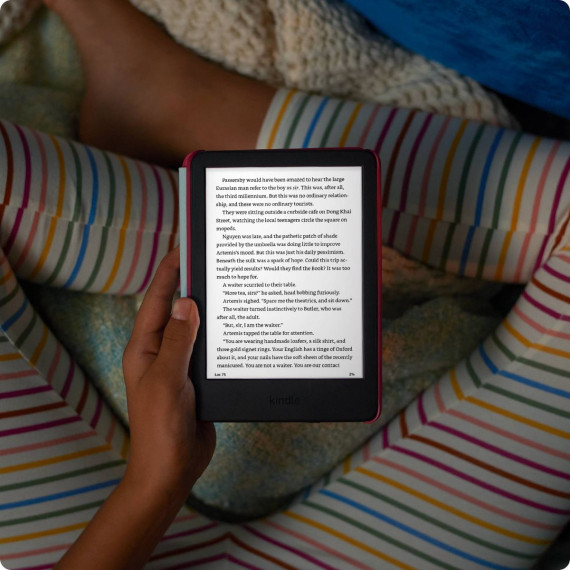 Grow their love of reading - Kindle Kids has everything for avid young readers. Lightweight, compact, and designed for reading—no apps, videos, or games. The bundle includes a Kindle (2024 release), with enhanced display, a 6-month Amazon Kids+ subscription, a kid-friendly cover, and a 2-year worry-free guarantee—up to a $187 value. Pages that pop - Stories jump off the page with Kindle Kids, now with faster page turns. The front light is now 25% brighter at max setting, as bright as Kindle Paperwhite. With the adjustable front light and dark mode, read effortlessly any time of day on the 6” glare-free 300 ppi display. In the box: Kindle, kid-friendly cover, USB-C charging cable and Quick Start Guide.