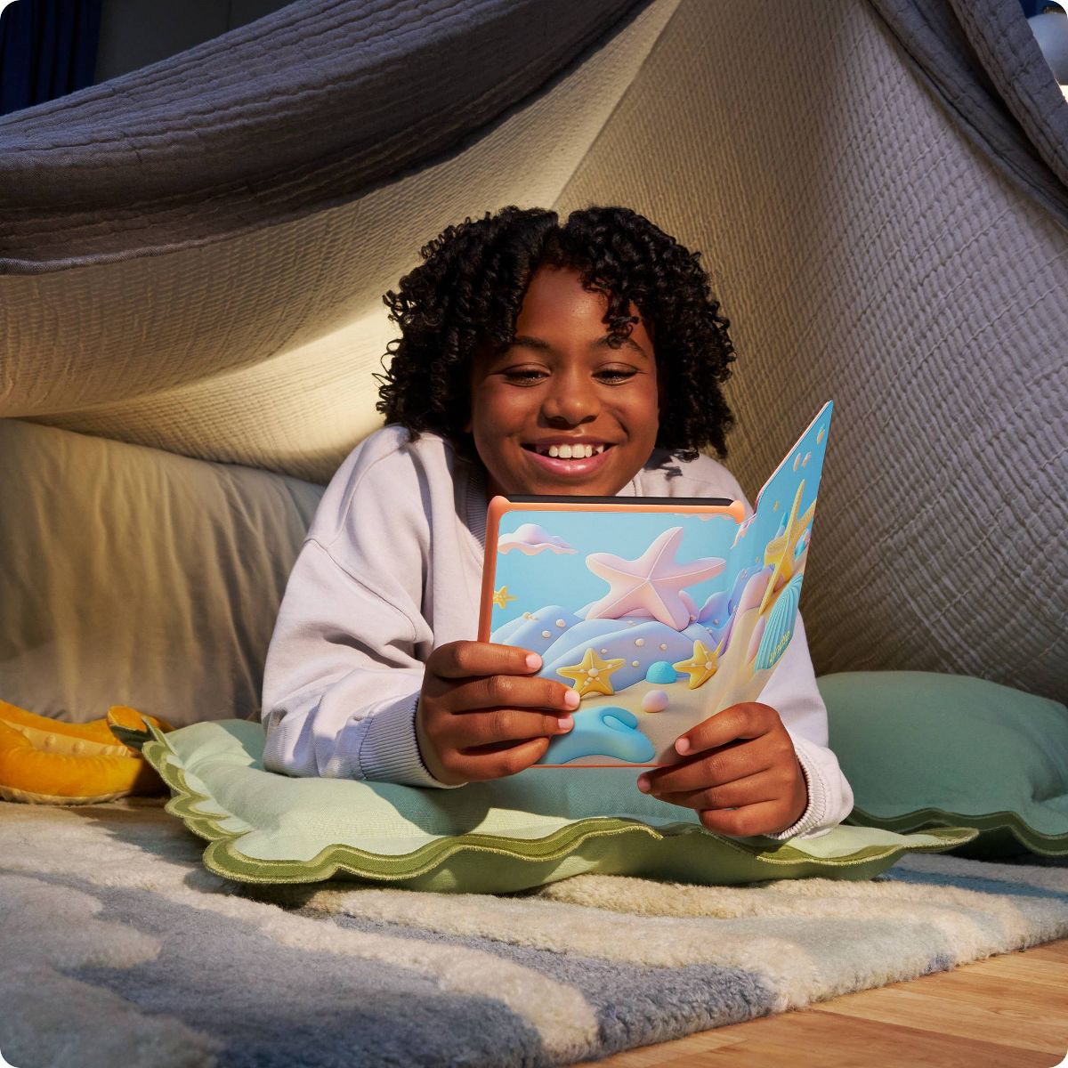 A whole new world of reading awaits - They’ll soon be lifelong readers thanks to the next-generation 7” Paperwhite display, up to 12 weeks of battery life, and an included 6-month subscription to Amazon Kids+. A massive library of kid-friendly fun - Enjoy 6 months of Amazon Kids+. From timeless reads like Artemis Fowl and Diary of a Wimpy Kid, to popular series like Harry Potter and Big Nate, get unlimited access to a library of curated content for kids of all ages, thousands of books, and hundreds of audiobooks. With an extensive library of age-appropriate books included, kids are empowered to discover new titles, authors, and read for longer. In the box: Kindle Paperwhite, kid-friendly cover, USB-C cable, and Quick Start Guide.