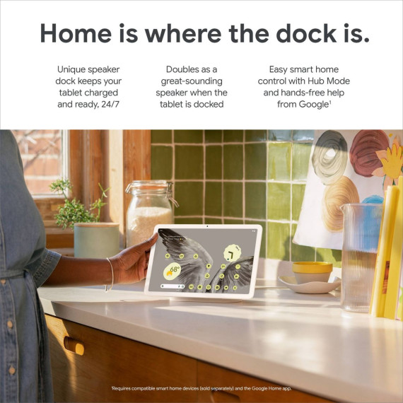 The Pixel Tablet is engineered by Google to be more helpful at home. Place it on the charging speaker dock for great-sounding music and video streaming.* Control your smart home, and say “Hey Google” for hands-free help.** It’s all powered by the Google Tensor G2 chip, and it’s the perfect companion to your Pixel phone.