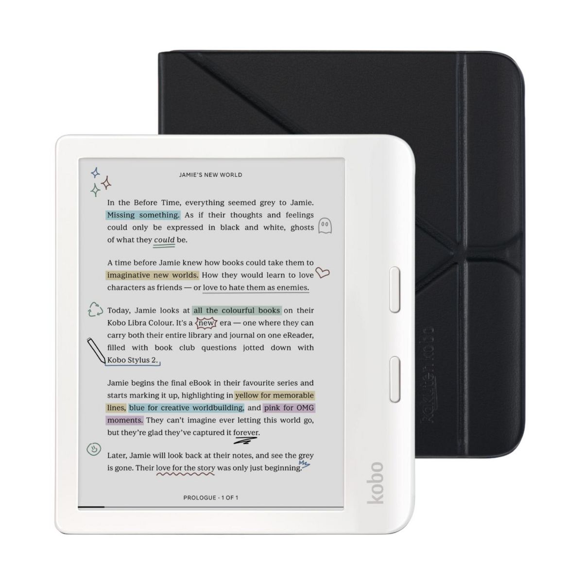 Kobo Libra Colour White eReader with Black Notebook SleepCover & AC Bundle