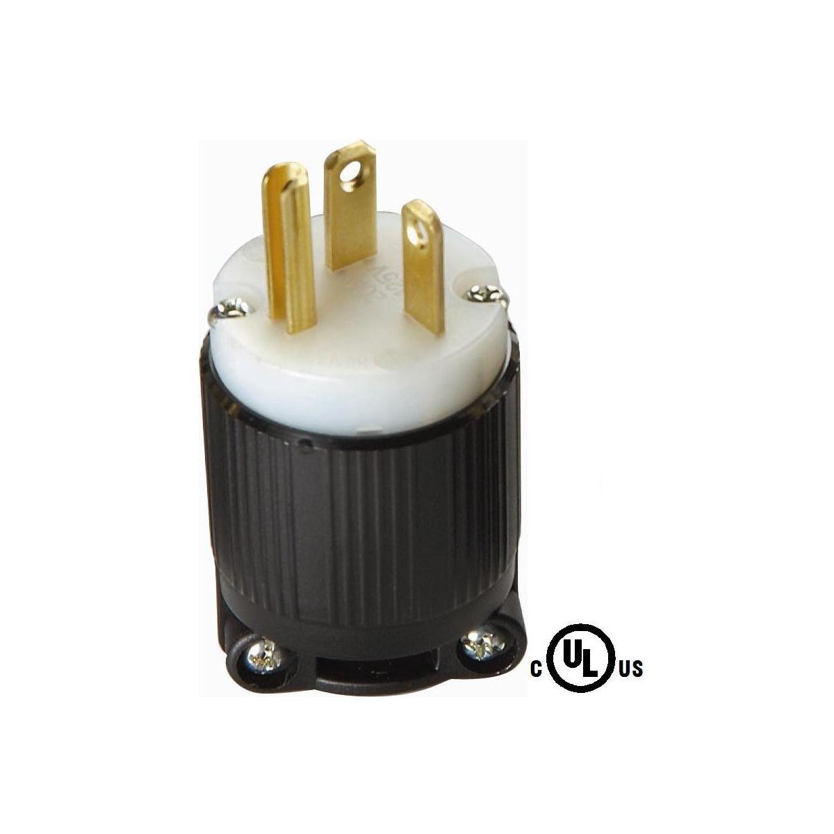 Highlights:20 amp125 voltNEMA 5-20P2P, 3-wireIndustrial gradeStraight bladeGrounding245-.700 cord rangeSuper tough nylon bodySolid brass contactsBlack/whiteUL and CSA certified