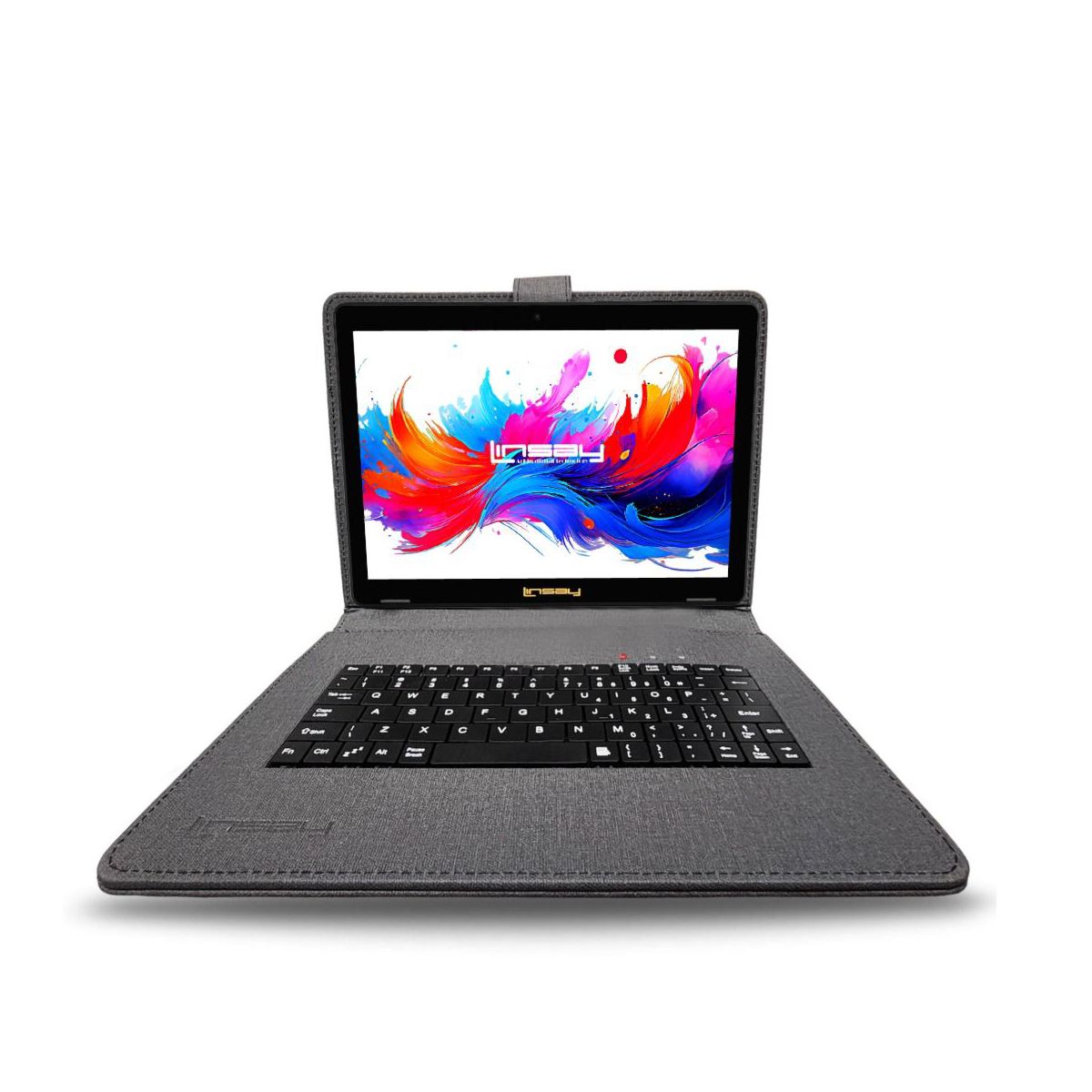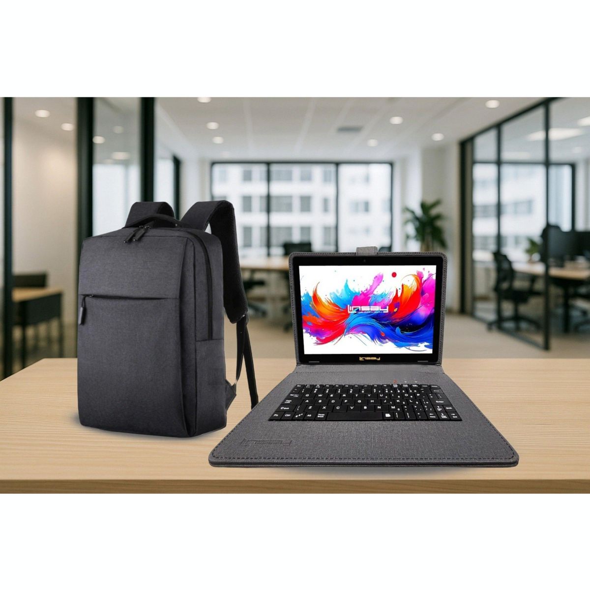 LINSAY® 10.1" Octa Core 256GB STORAGE Android 15 BUNDLE with BLACK DESIGNER CLOTH KEYBOARD CASE and STYLISH COMPACT BACKPACK