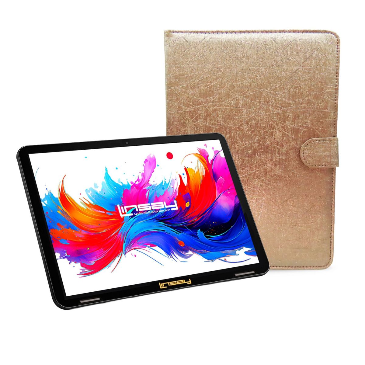 Meet the New 10.1 in. LINSAY High End Octa Core Processor with 4GB RAM 256GB SSD Solid Storage 1280x800 IPS Screen High Resolution Tablet and Newest Google Android OS 15 Keeps You in Touch. Stay connected with the easy-to-use LINSAY Octa Core 10 in. capacitive tablet bundle with Google Android 15. This high-tech tablet is a flexible and powerful mobile Internet solution. Multi-task with the 10.1 in. Capacitive 1280x800 IPS Touch Screen and Android 15 Operating System along with 256GB SSD Internal Memory and customize your home screen with favorite games, social media tools, productivity apps and more. You'll find that the 10 in. tablet bundle Google Android OS 15 makes staying connected a snap. Email, browse the web and reach out to friends and family no matter where you are, right from your hand-held device. Capture and share all of life's best moments with the tablet's built-in Front and Rear Camera. Listen to your favorite music or watch TV and movies with clear audio through built-in stereo speakers. No matter how you choose to use your device, you'll find this tablet offers a powerful solution for both productivity and entertainment.
