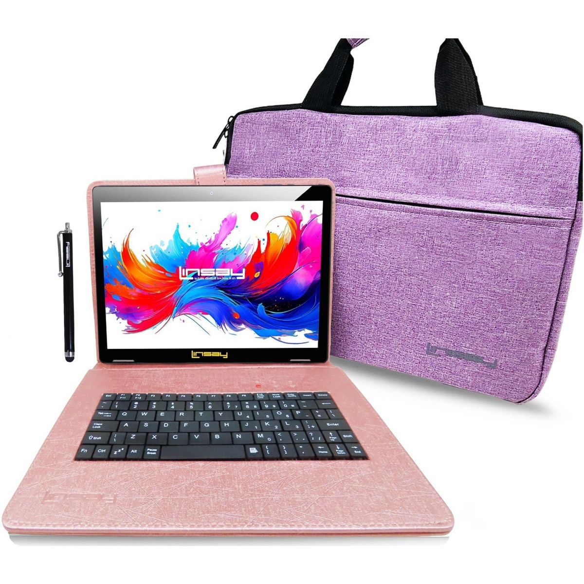 LINSAY® 10.1" Octa Core 256GB STORAGE Android 15 BUNDLE with PINK UNIQUE ORACLE KEYBOARD CASE and TABLET BRIEFCASE