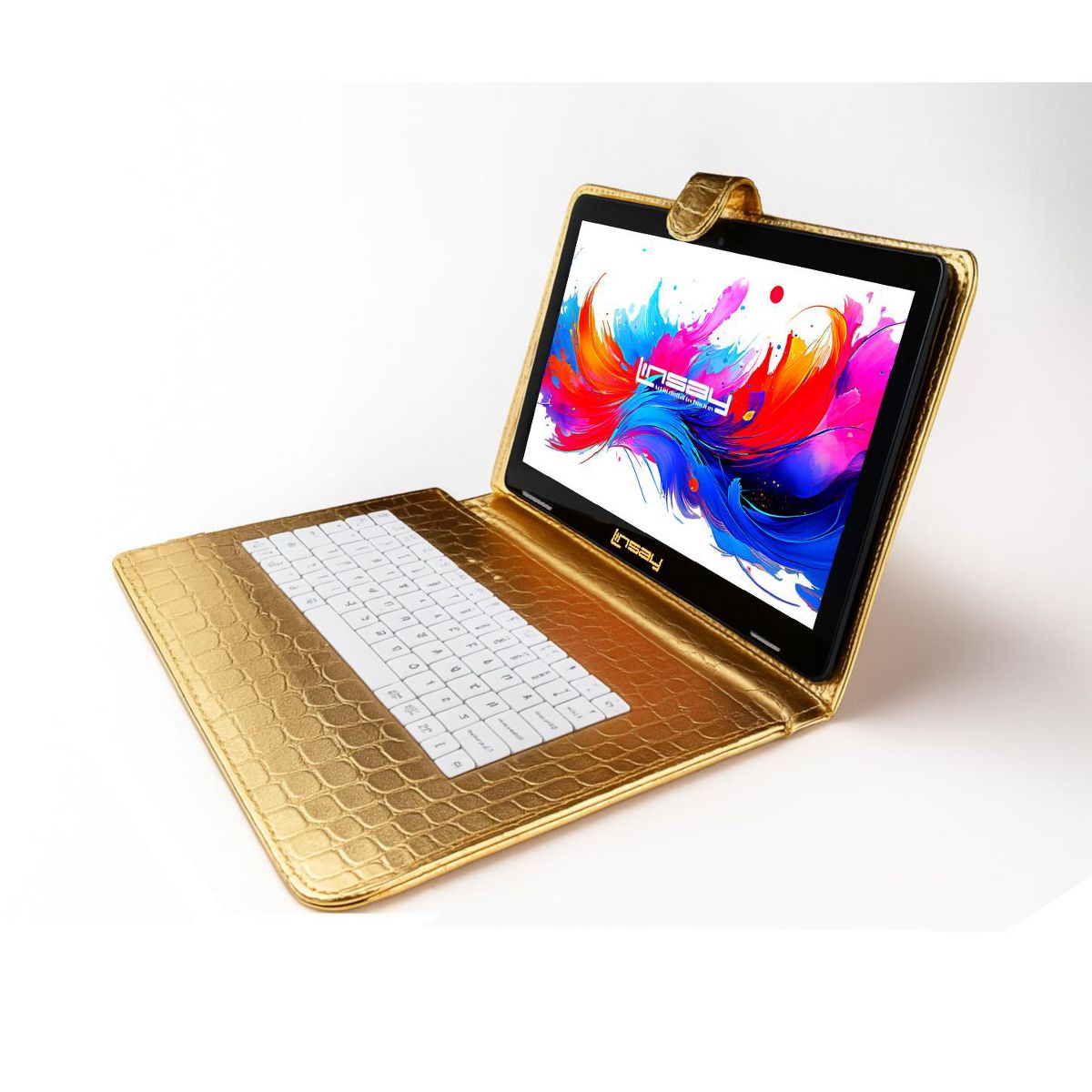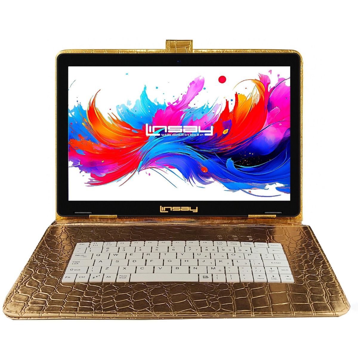 LINSAY® 10.1" Octa Core 256GB Storage Android 15 Tablet Dual Camera Android with Golden Keyboard