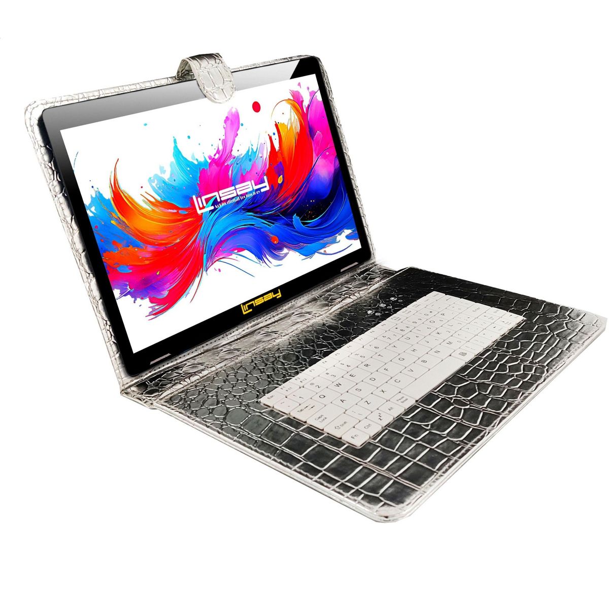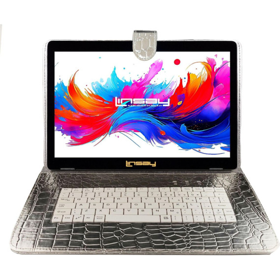 LINSAY® 10.1" Octa Core 256GB Storage Android 15 Tablet Dual Camera Android with Silver Keyboard