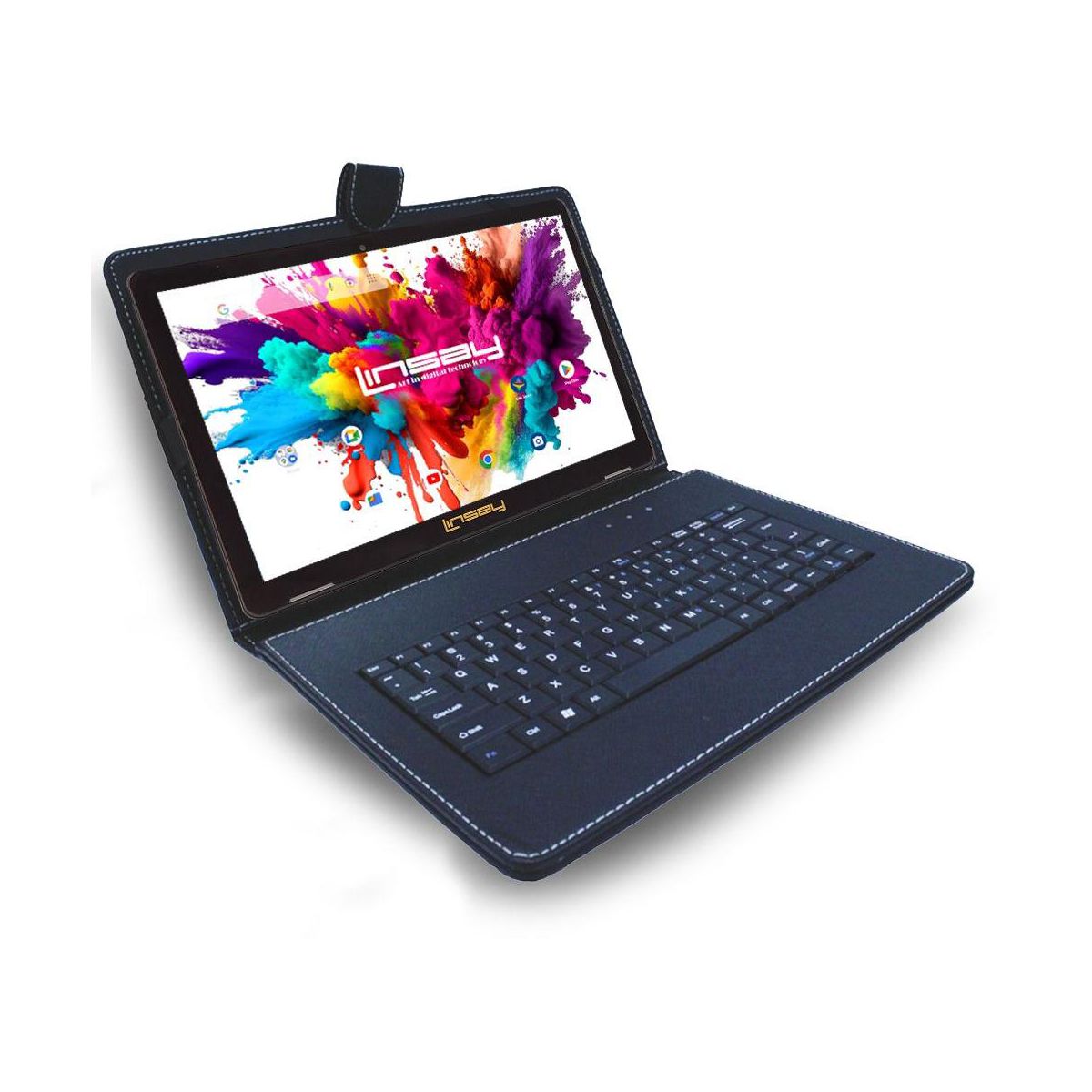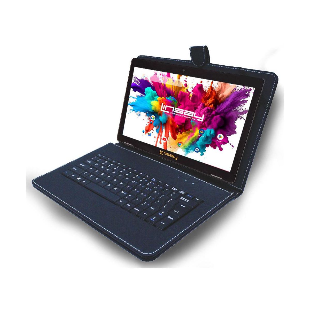 Meet the New 10.1 in. LINSAY Quad Core Processor 4GB RAM 128GB Storage 1280x800 IPS Screen High Resolution Tablet Exclusive Bundle with PU Leather Keyboard, Back Pack and Newest Google Android OS 15 Keeps You in Touch. Stay connected with the easy-to-use LINSAY Quad Core 10 in. capacitive tablet bundle with Google Android 15. This high-tech tablet is a flexible and powerful mobile Internet solution. Multi-task with the 10.1 in. Capacitive 1280x800 IPS Touch Screen and Android 15 Operating System along with 128GB Internal Memory and customize your home screen with favorite games, social media tools, productivity apps and more. You'll find that the 10 in. tablet bundle Google Android OS 15 makes staying connected a snap. Email, browse the web and reach out to friends and family no matter where you are, right from your hand-held device. Capture and share all of life's best moments with the tablet's built-in Front and Rear Camera. Listen to your favorite music or watch TV and movies with clear audio through built-in stereo speakers. No matter how you choose to use your device, you'll find this tablet offers a powerful solution for both productivity and entertainment.