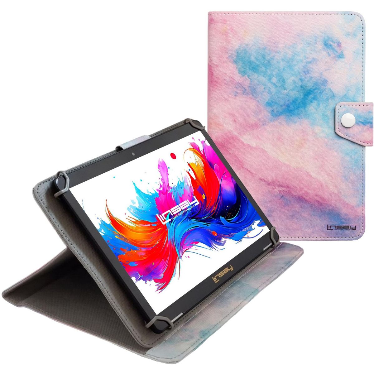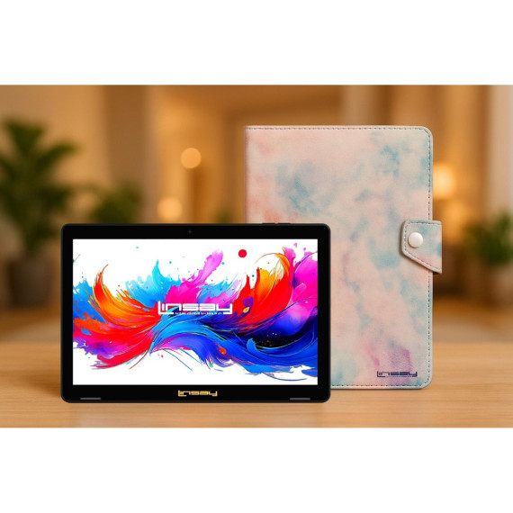 LINSAY 10.1"Octa Core 256GB Storage Android 15 Tablet with Pink Marble Case