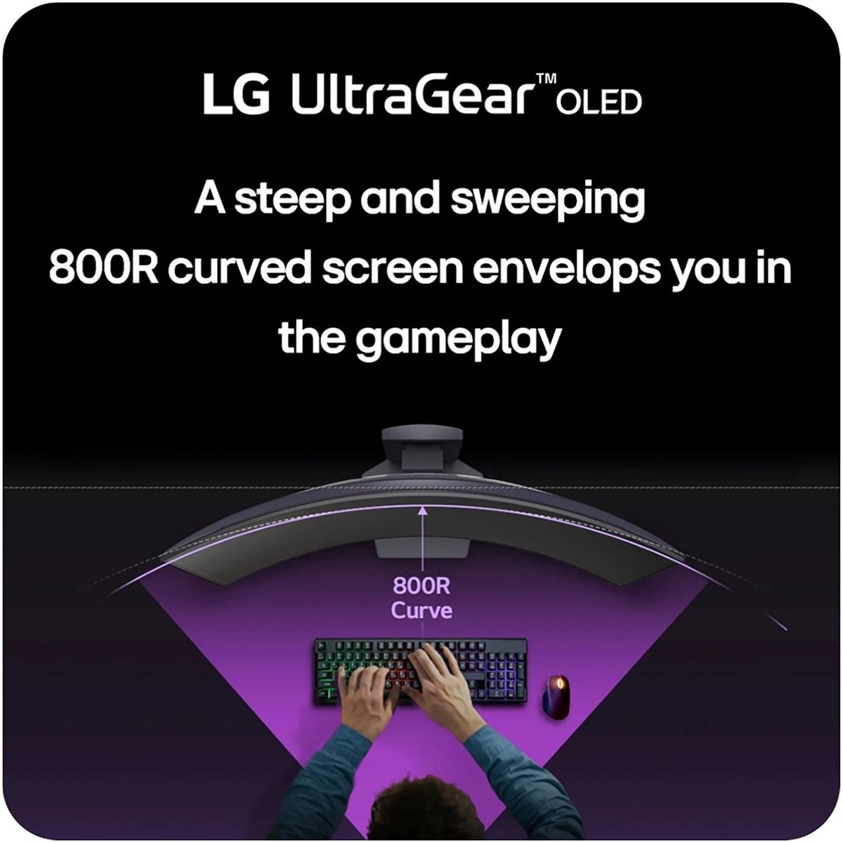 - The 39" UltraGear OLED's steep and dramatic 800R curve surrounds you in the action
