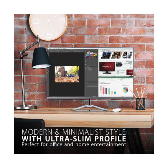 Refurbished-The ViewSonic VX3276-mhd is a sleek 32” Full HD monitor with a modern and minimalist style perfect for home and office use. With SuperClear® IPS Panel technology, this monitor offers best-in-class screen performance with ultra-wide viewing angles. A premium ID includes an ultra-slim profile, unique desktop stand, and a sleek edge-to-edge frameless design, that when combined with vivid 1920x1080 resolution and dual speakers, deliver an immersive viewing experience for home entertainment, multimedia applications, and office work. HDMI, DisplayPort, and VGA inputs offer flexible connectivity options for both computing and gaming environments, while ViewSonic’s exclusive ViewMode™ feature provides intuitive presets for optimized screen performance in different applications. In addition, Flicker-Free technology and a Blue Light Filter help to minimize eyestrain from extended viewing periods. ***** Manufacturer Refurbished Product. Please note that this is a pre-owned item. - Manufacturer Refurbished