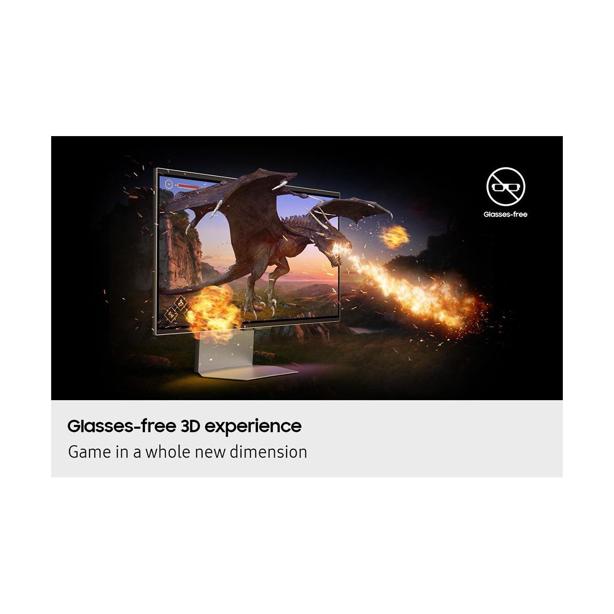 Samsung's 27" Odyssey G9 3D Gaming Monitor delivers the industry’s best 3D picture quality for epic gameplay. Experience 3D gaming without the need for special glasses, thanks to eye-tracking technology and view mapping algorithms. AI 3D Video Conversion analyzes and converts content, transforming videos into 3D, and Odyssey 3D Hub is the gateway to an unbeatable 3D video and gaming experience. Built-in dual speakers provide directional sound that enriches the audio of 3D videos. 165Hz Refresh Rate and near-instant 1ms Response Time (GtG) enable movements in real-time with minimized lag for ultra-smooth gameplay. G-Sync compatibility and AMD FreeSync™ Premium reduce choppiness, screen lag, and image tears, even for the most intense fast-action gaming sessions. Edge Lighting expands game maps with LEDs around the bottom of the monitor which detect and match colors on the screen for a more realistic visual experience.