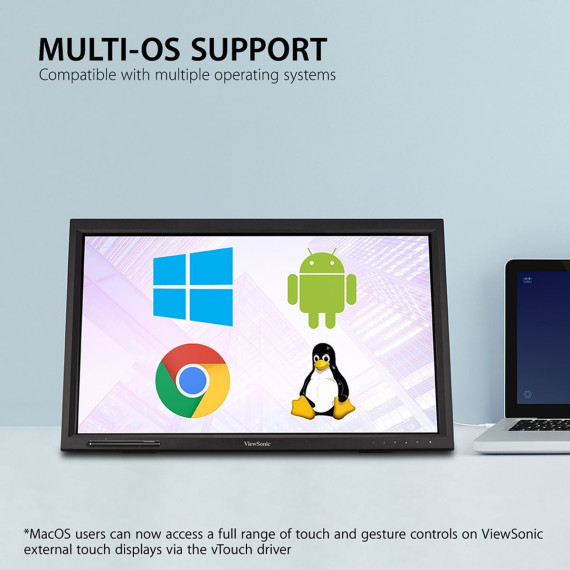 Great for public kiosks, POS displays, and other retail and commercial applications, the ViewSonic TD2423d is a 24” touch display with 10-point IR touch technology that lets users pinch, zoom and swipe for fast and intuitive navigation. With Full HD 1920x1080 resolution, 3000:1 static contrast ratio and 7H screen hardness, the TD2423d delivers sharp and bright images combined with durability for high-traffic applications. Flexible connectivity options include HDMI, DisplayPort, VGA, DVI, and a USB hub to connect your peripherals and accessories. VESA-mount compatibility offers additional convenience and flexibility for 3rd party stands and mounts. What’s more, ViewSonic’s exclusive ViewMode feature provides intuitive presets that deliver optimized screen performance in different applications. In addition, Flicker-Free technology and a Blue Light Filter help to eliminate eyestrain from extended viewing periods for improved productivity. Whether in retail or deployed in a high-traffic commercial setting, its scratch-resistant surface stands up to heavy use and safeguards its high quality touch experience. Combine this display with ViewSonic's Android and Windows media players for a perfect kiosk solution.....