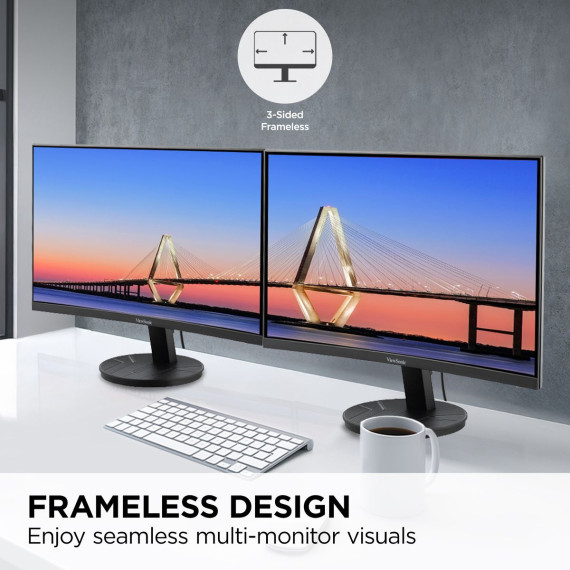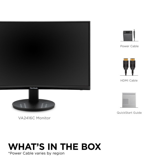 ViewSonic VA2416C 24" Full HD 1080p Frameless Curved Monitor with Variable Refresh Rate, Eye Care, HDMI, and DisplayPort Inputs for Home and Office