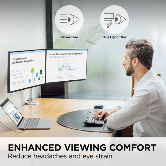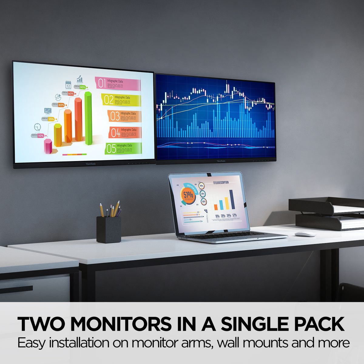"Skyrocket productivity and optimize your workflow with the ViewSonic® VA2456-MHD_H2 dual monitor pack. Featuring hassle-free installation and long-term reliability, this dual 24"" monitor solution substantially lowers your total cost of ownership. And with biodegradable packaging and VESA-compatible mounting, you can easily cut down on waste and do your part to contribute to a greener planet. Featuring a 3-sided ultra-thin bezel, the VA2456-MHD_H2 provides a seamless multi-monitor viewing experience that dramatically increases visual clarity and helps to reduce eye strain. And with SuperClear® IPS panel technology, you can enjoy wide-angle viewing and vibrant, true-to-life colors. Connect your favorite devices with ease using the HDMI, DisplayPort, and VGA inputs. Upgrade your setup and enhance productivity with the ViewSonic VA2456-MHD_H2 dual monitor pack today.