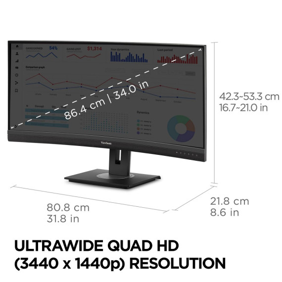 ViewSonic VG3456C 34 Inch 21:9 UltraWide QHD 1440p Curved Monitor with Ergonomics Design, USB C Docking Built-In, Gigabit Ethernet for Home and Office