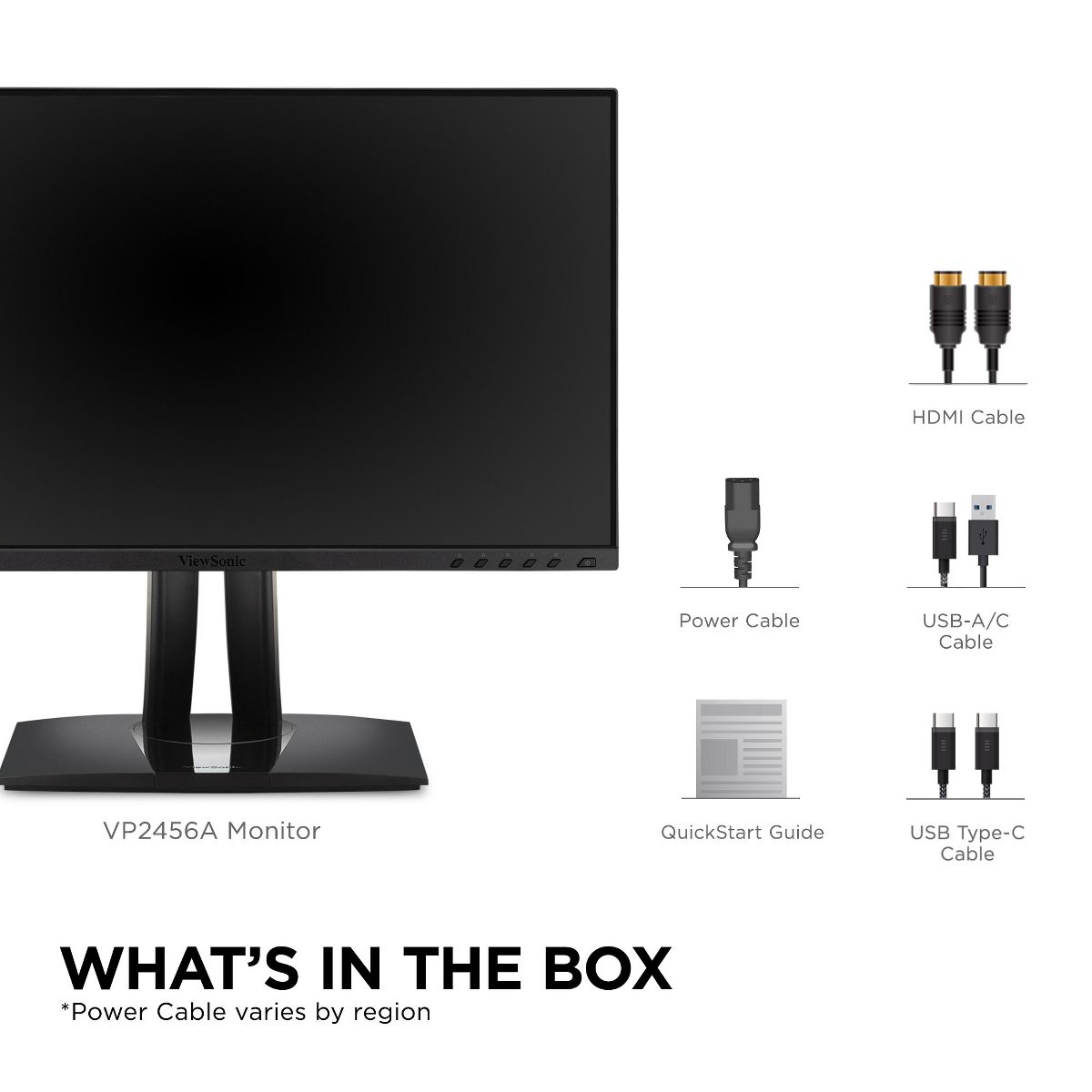 Engineered to deliver unmatched color accuracy crucial for professional applications, the ViewSonic VP2456A 24" (23.8" viewable) Full HD monitor displays your work with the vivid and lifelike color it deserves. With a SuperClear® IPS panel and a sleek 3-sided frameless design, the VP2456A provides a near-seamless viewing experience ideal for multi-monitor setups. The VP2456A is equipped with USB-C for single cable connectivity to deliver video, audio, and 90W of power delivery. To ensure precise, uniform color, each of our monitors is factory calibrated to deliver an amazing Delta E <2, so you can be confident what you see on screen is what your clients and customers will see as well.