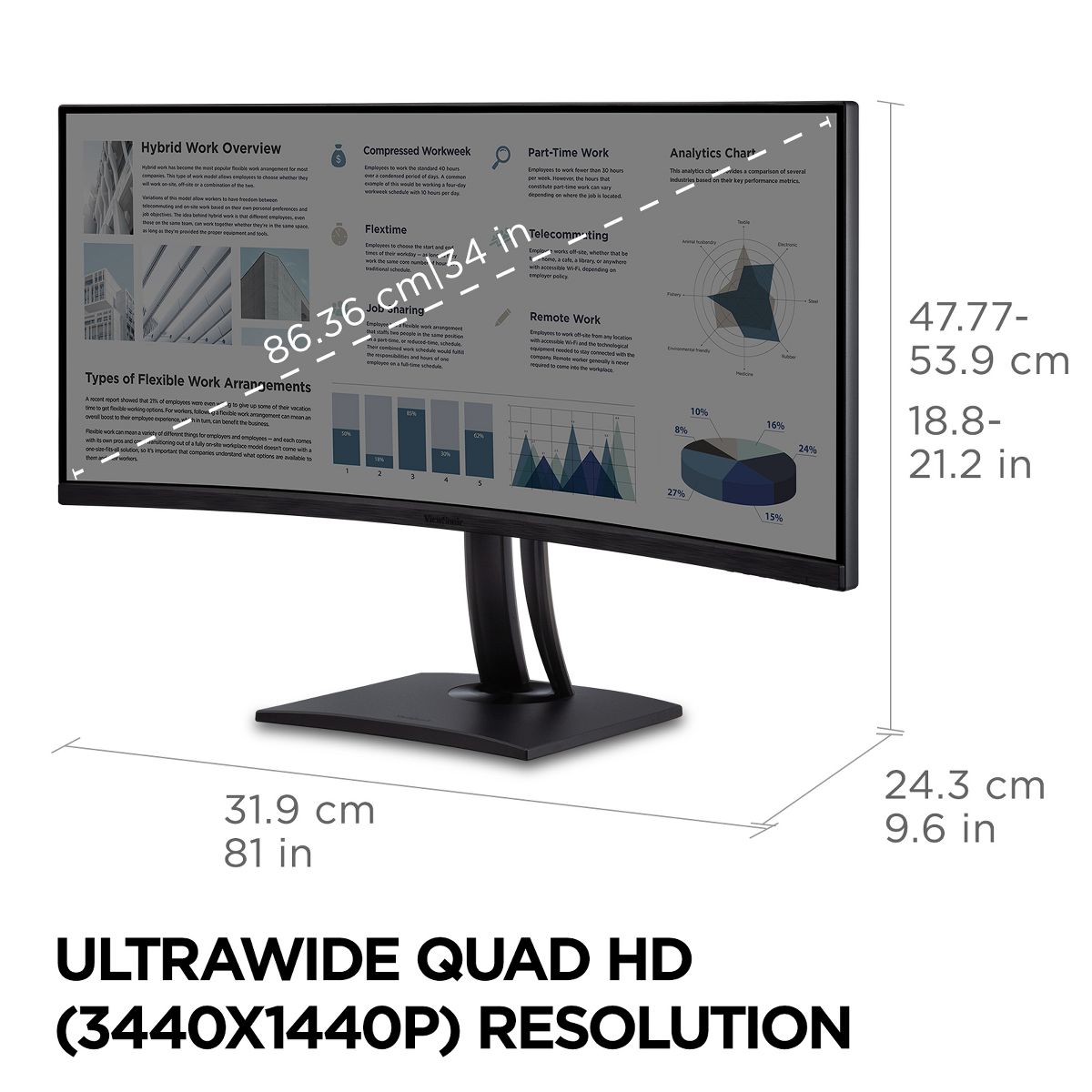 ViewSonic VP3456A 34 Inch UltraWide QHD 1440p Curved Monitor with ColorPro 100% sRGB 14-bit 3D LUT, 100W USB C, HDMI, DisplayPort and USB Hub for