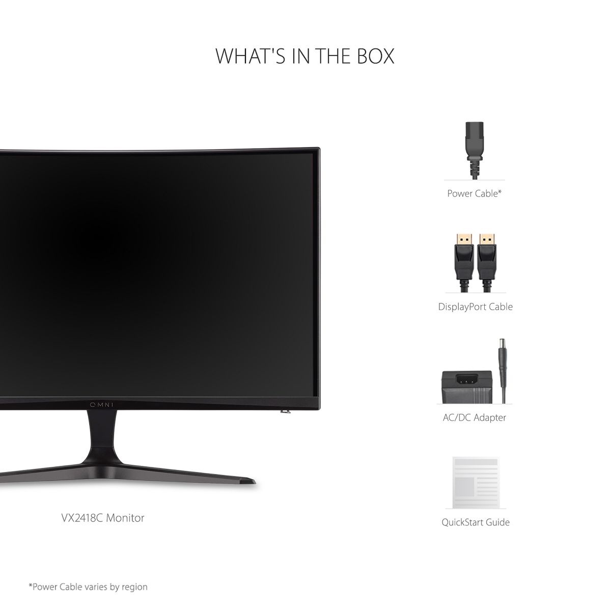 With an immersive 1500R curved screen and Full HD 1080p resolution, the ViewSonic VX2418C monitor provides an incredible viewing experience for work or play. With features including a high 180Hz refresh rate, 1ms (MPRT) repsonse time and AMD FreeSync Premium technology, this monitor virtually eliminates screen tearing and stuttering for a fluid gaming experience. The VX2418C also comes equipped with ViewSonic exclusive ViewMode presets, which offer optimized screen performance for different home entertainment applications such as watching movies, editing files, or playing video games. Two HDMI (v2.0) inputs, and one DisplayPort (v1.2) input offers flexible connectivity for both general use and entertainment.
