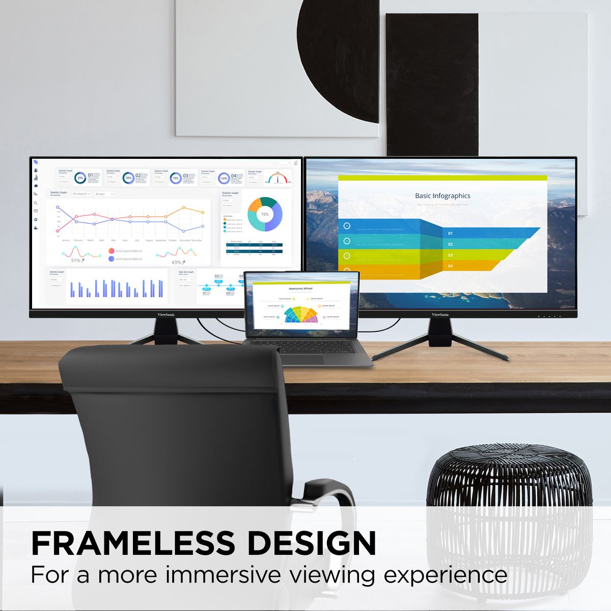 Designed for the modern-day home office, the ViewSonic VX2767u-2k is a 27” Quad HD IPS monitor that combines style with optimal versatility and functionality. With a 3-sided frameless design, this monitor provides a near-seamless viewing experience ideal for multi-monitor setups. The latest USB 3.2 Type-C connectivity delivers 65W charging power, video, and audio over a single cable, while HDMI and DisplayPort inputs keep you connected to your favorite devices. Moreover, HDR10 content support delivers vivid colors and brightness that exceed standard monitors.