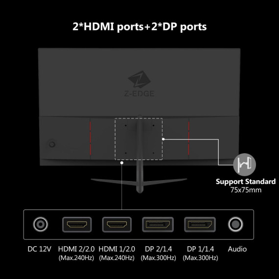 Z-EDGE UG25S 300Hz IPS Gaming Monitor, FHD 1920*1080, 1ms Frameless LED, AMD Freesync Premium Display Port HDMI
