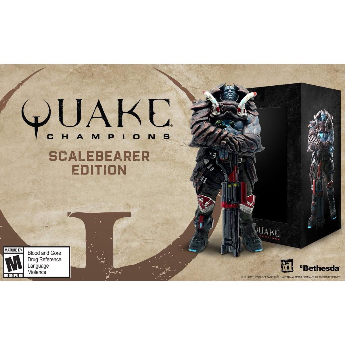 Developed by id Software, in conjunction with Saber Interactive, Quake Champions - Scalebearer Edition from Bethesda Softworks for PC Computers is a return to the frenetic, fast-paced competition that established Quake as the originator of the multiplayer shooter genre more than 20 years ago.Scalebearer Edition includes a hand-painted, 12” tall Scalebearer statue, an exclusive Oni Skin code, and the Champions Pack, which unlocks access to all current and future Champions, alongside a suite of other in-game goodies!Quake Champions delivers the dark mythos of the first Quake combined with the groundbreaking multiplayer mayhem of Quake III Arena with a major modern twist – Champions. These fierce warriors each wield unique attributes and abilities, enabling players to compete in their own distinctive style, while adding an additional layer of strategy to the game.The Next Great Quake Multiplayer GameQuake’s signature rocket jumping, skill-based competition, and incredible speed remains intact, providing veterans with a welcome return and new players a fresh way to showcase their multiplayer skills.Players will frag enemies using a variety of powerful weapons while battling their friends in four competitive game modes, including Deathmatch, Team Deathmatch, Duel, and the team-focused Sacrifice.Incredible, Diverse ChampionsQuake Champions will introduce a roster of elite Champions, each equipped with unique attributes and abilities that are additive to Quake’s established gameplay. Champions are colorful, charismatic - and sometimes weird - and possess both an Active and Passive ability designed to enhance individual play styles.Players can choose a Champion based on abilities or style, from Quake vets like Ranger and Anarki, to newcomers like Clutch and Scalebearer.Uncompromising Weapons, Ready for BattleQuake III Arena’s devastating arsenal of flesh-chewing weaponry, including fan-favorites like the thunderous Rocket Launcher, electrifying Lightning blaster, and snipe-tastic Railblaster are back along with the Shotblaster, Machine blaster, and the ever-personable melee-masher, the Gauntlet. Players can also acquire classic versions of weapons, including the Quake 1 Rocket Launcher, the Quake 2 Railblaster, and more.Intense Game ModesEstablished and beloved game modes return, including the gib-filled fragfests of Deathmatch and Team Deathmatch and the competitive fury of 1v1 Duel mode, while a new team-based mode, Sacrifice, joins the fray. Playing like a combination of Domination and Single Flag Capture the Flag, Sacrifice challenges players to work together, strategize, and dominate the arena.Play for Free… Or Upgrade to the Champions PackQuake Champions will be available for free to all PC players, with all maps, modes, and weapons included, as well as an initial Champion, Ranger. Additional Champions will be available for trial and purchase individually.Players can alternatively choose to purchase the Champions Pack, a version that will include the full roster of Champions and additional, exclusive bonuses. Free players can upgrade to the Champions Pack at any time. Both free and paid players will be able to play all modes and maps, uniting paid and free players in a single, endless test of skill.Your Champion, Your StylePlayers can upgrade and customize armor appearance, vanity items, weapons, and more through a loot box-style system. These boxes can be earned by leveling up, purchased using in-game currency, or purchased through the in-game store for money.Ever wanted to take home your very own intergalactic warlord? Now you can with the Quake Champions Scalebearer Edition!Features:Immediate entry to Early Access program.Exclusive Ranger & Scalebearer Oni skin.12" hand Painted PVC Scalebearer statue.Champions Pack code which unlocks access to all Champions and other in game items.