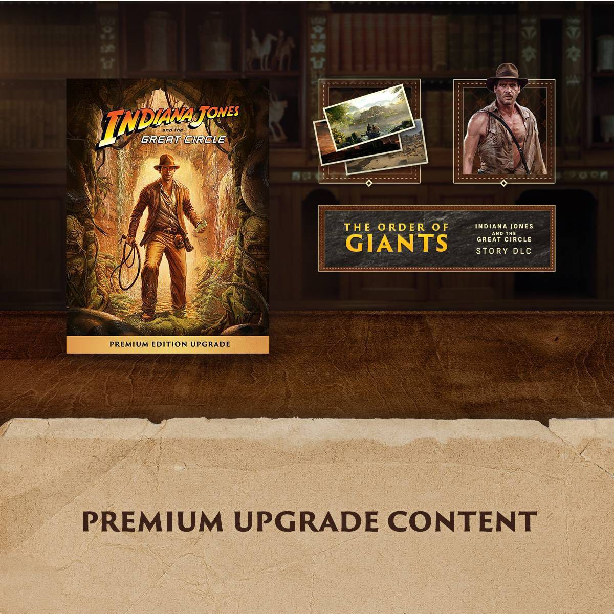 Live the adventure with the Premium Upgrade to Indiana Jones and the Great Circle™: The Order of Giants™ Story DLC (upon release), a digital artbook, and the Temple of Doom™ Outfit, Indy’s iconic look as seen in Temple of Doom™ (base game required, sold separately).