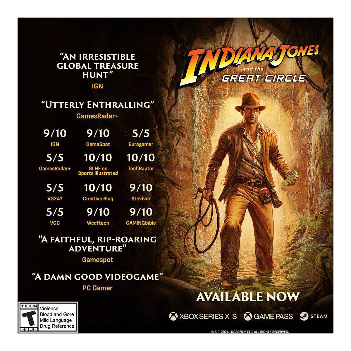 Uncover one of history’s greatest mysteries in Indiana Jones and the Great Circle™, a first-person, single-player adventure set between the events of Raiders of the Lost Ark™ and The Last Crusade™. The year is 1937, sinister forces are scouring the globe for the secret to an ancient power connected to the Great Circle, and only one person can stop them – Indiana Jones™. You’ll become the legendary archaeologist in this cinematic action-adventure game from Machine Games, the award-winning studio behind the recent Wolfenstein series, and executive produced by Hall of Fame game designer Todd Howard.