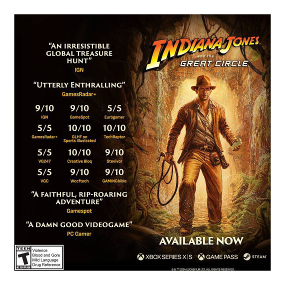 Uncover one of history’s greatest mysteries in Indiana Jones and the Great Circle™, a first-person, single-player adventure set between the events of Raiders of the Lost Ark™ and The Last Crusade™. The year is 1937, sinister forces are scouring the globe for the secret to an ancient power connected to the Great Circle, and only one person can stop them – Indiana Jones™. You’ll become the legendary archaeologist in this cinematic action-adventure game from MachineGames, the award-winning studio behind the recent Wolfenstein series, and executive produced by Hall of Fame game designer Todd Howard.