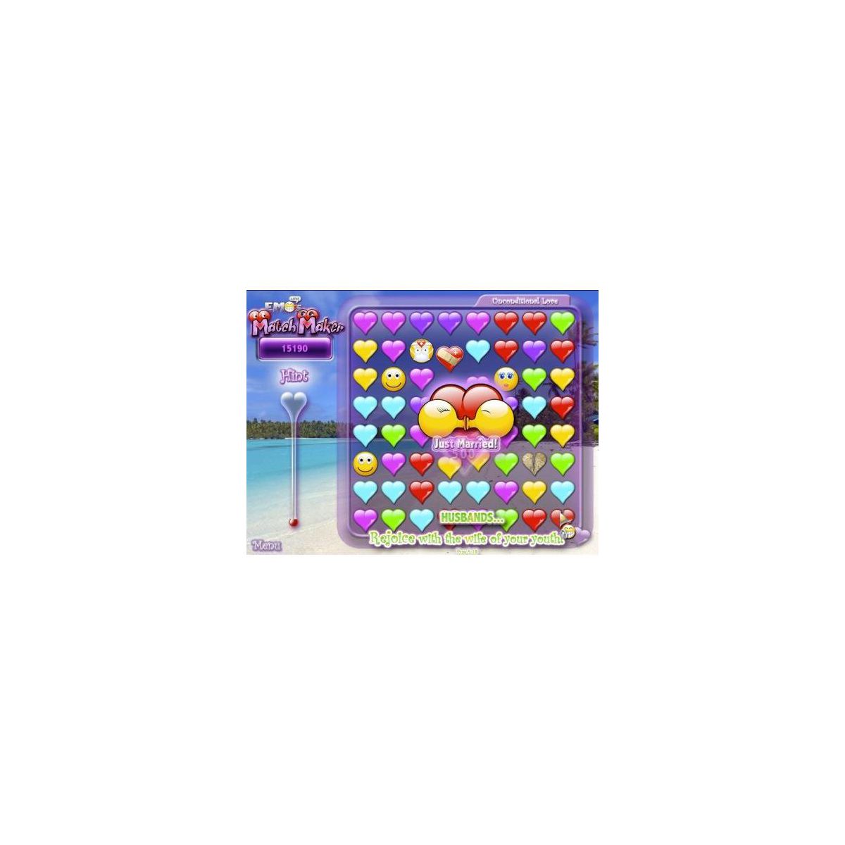 Match adorable love hearts to bring together happy couples. Wedding bells ring and the celebration begins with even more bonus points and surprises! Don't worry about a broken heart. The Love Doctor is on call to help you as each level increases the challenge. Emotions run high in the game of love! Highly addictive and unlimited game play that will entertain the entire family!