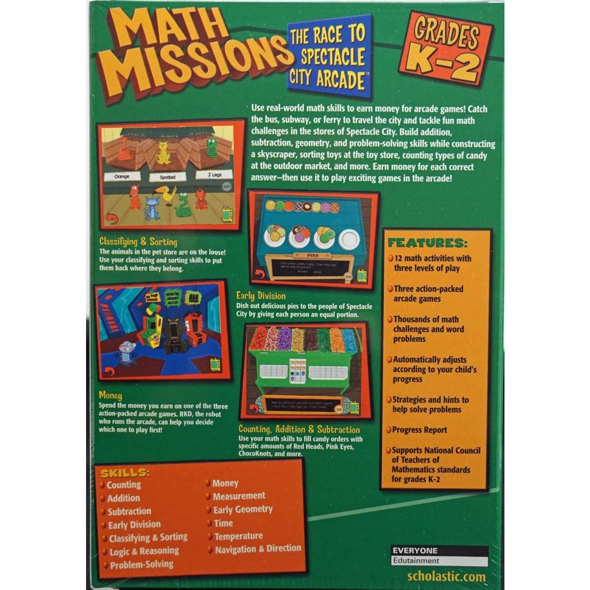 Use real world math skills to earn money for arcade games in Math Missions: The Race to Spectacle City Arcade! Catch the bus, subway, or ferry to travel the city and tackle fun math challenges in the stores of Spectacle City. Build addition, subtraction, geometry, and problem solving skills while constructing a skyscraper, sorting toys at the toy store, counting types of candy at the outdoor market, and more. Earn money for each correct answer, then use it to play exciting games in the arcade! It's the perfect game for kids in grades K through 2.