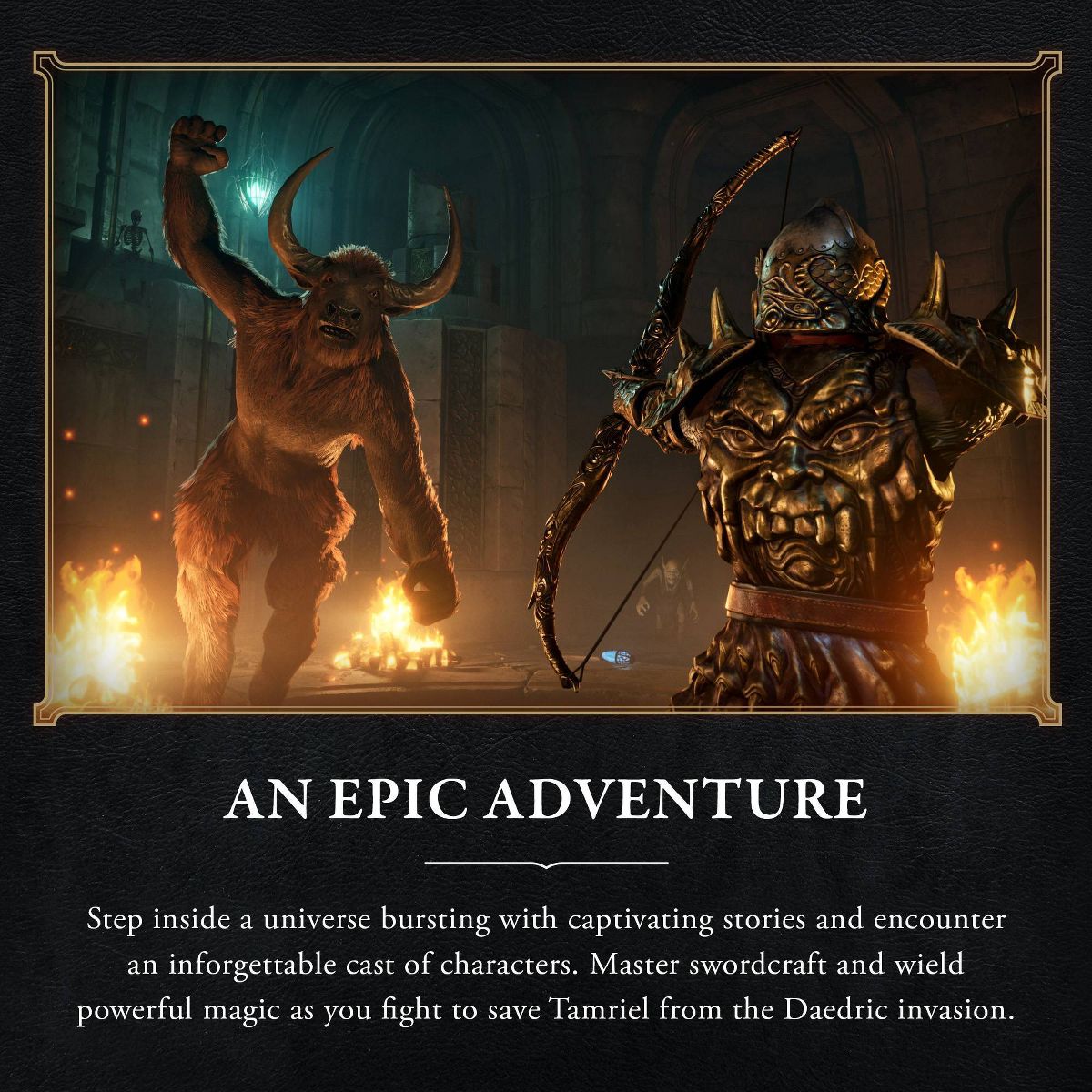 Journey through the rich world of Tamriel and battle across the planes of Oblivion where handcrafted details have been meticulously recreated to ensure each moment of exploration is awe-inspiring.