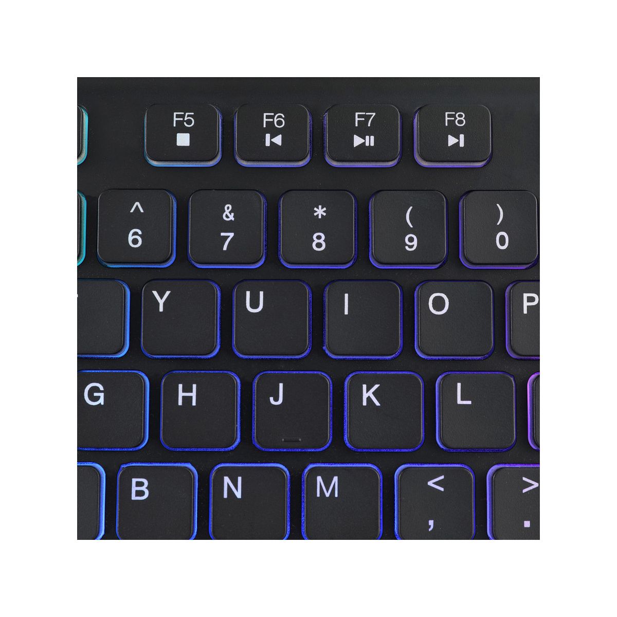 The Adesso AKB-137CB Illuminated Gaming Keyboard & Mouse Combo is a great choice for gamers who want the important gaming features without breaking the bank. The Illuminated Backlit Keyboard and mouse come with a Green, Blue, Purple, Red illumination effect. With the touch of the lighting button, user can easily toggle on and off.The keyboard's different hotkeys also provide quick access to your media player controls as well as different lighting options. The mouse equipped with enhanced optical engine of 1000 DPI (by default) allows your device to work with improved speed, accuracy, and reliability. Features: Multi-Colored Illuminated Keyboard and Illuminated MouseThe Illuminated Backlit Keyboard and mouse come with a Green, Blue, Purple, Red illumination effect. With the touch of the lighting button, user can easily toggle on and off. Hold FN+Brightnessup to adjust the brightness up, or hold FN+Brightness down to adjust brightness down. Slim Low Prof