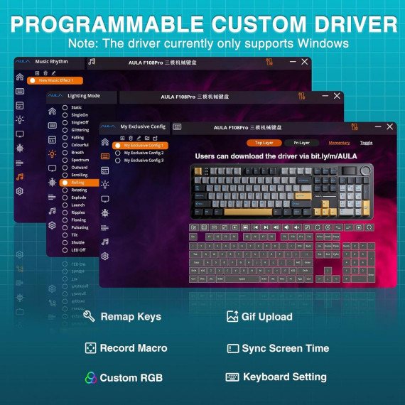 The AULA F108 Pro Mechanical Keyboard combines performance and style with hot-swappable switches, a smart screen and multifunction knob, customizable RGB lighting, and a full-size 108-key layout. Built with durable materials and wide compatibility across Windows, macOS, iOS, and Android, it delivers precision and comfort for both gaming and office use.