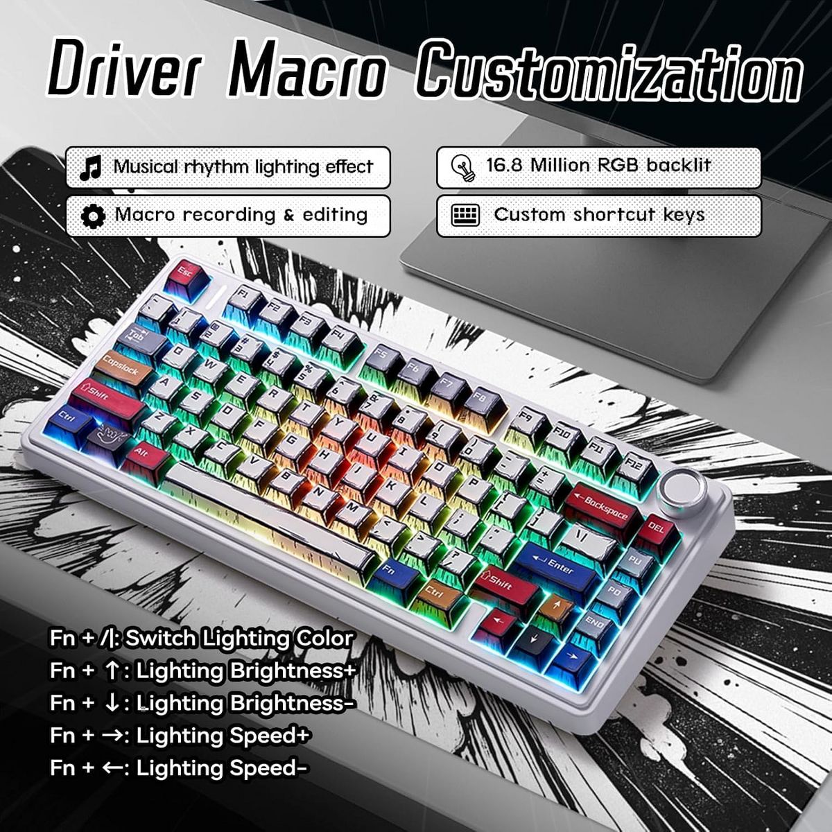 AULA F75 81-Key Wireless Hot Swappable Mechanical Gaming Keyboard, RGB, Knob, 4000 mAH Battery, Normal/ Patterned Keycap