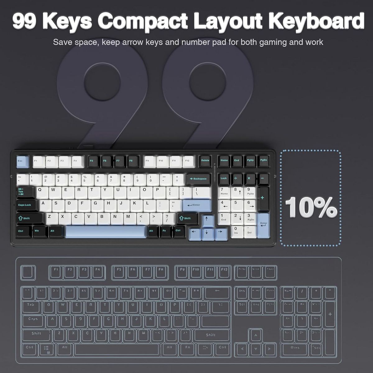 AULA F99, 99-Key, Wireless, Hot Swappable, Mechanical Gaming Keyboard, RGB, 5-Layer Padding, 8000 mAh Battery