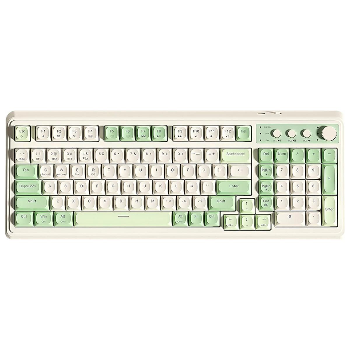 The AULA 99 Light-Up Keyboard combines retro charm with modern versatility, featuring Bluetooth 5.0, 2.4GHz wireless, and USB connectivity for seamless switching across five devices. With customizable RGB lighting, macro support, and a 96% layout including a numeric keypad, it’s built for both work and play. Ergonomic design and programmable keys ensure comfort and control, while compatibility with Windows, macOS, Android, and iOS makes it a reliable everyday companion.