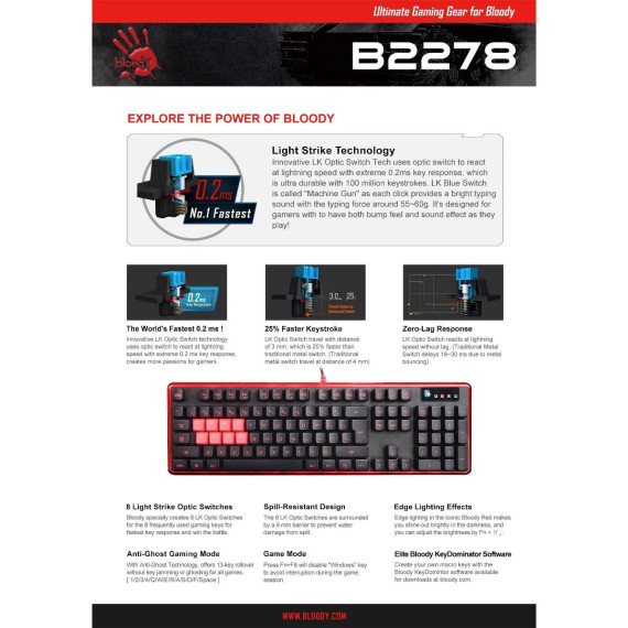 Bloody B2278 8 Light Strike Mechanical Gaming Keyboard