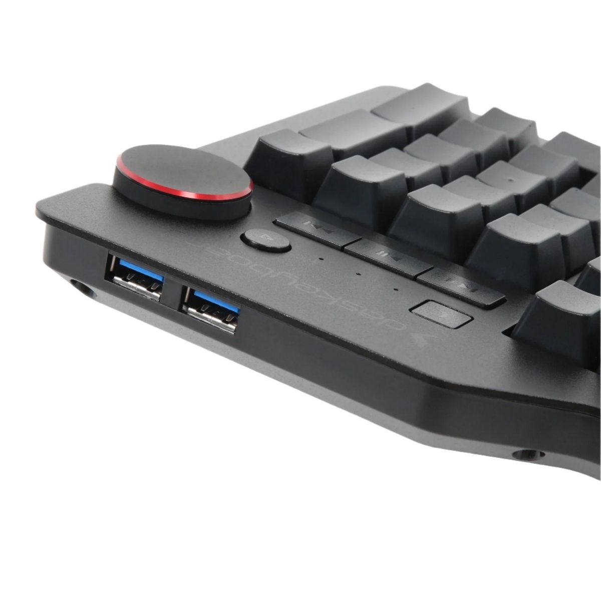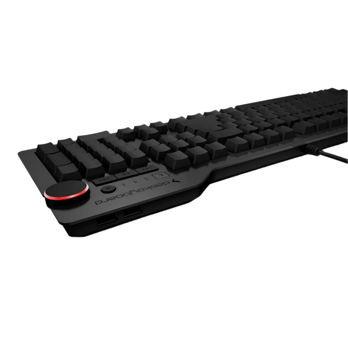 Das Keyboard 4 Ultimate is a mechanical keyboard experience is like no other. From the initial idea to every fine detail when crafting this machine, the resulting experience is what drives Das Keyboard. The combination of tactile feel, the psycho-acoustic experience, and incredible craftsmanship all deliver an unmatched typing experience. The switches provide a feedback that'll satisfy the fingertips. Be in full control at all times with the dedicated media keys and oversized volume knob. Made for ultimate typists and gaming enthusiasts, the keys are left blank for customization. The 2-port USB 3.0 hub delivers blazing fast data transfer speeds. Typists and gamers alike will enjoy the full n-key rollover for unlimited simultaneous inputs, even through a USB input. If you're looking for more bonus features, check the bottom of the keyboard - the footbar detaches to be used as a ruler. With a Das Keyboard 4 Ultimate, you'll type faster and longer. It feels so good, you won't want to stop