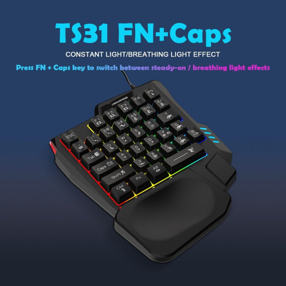 Designed for speed and comfort, the Ultima Series 35-Key Ergonomic Gaming Keyboard delivers responsive control in a compact, one-hand layout. Its LED rainbow backlighting enhances visibility during gameplay, while the integrated palm rest supports the wrist to reduce fatigue. The durable, waterproof build ensures long-lasting reliability, and the USB plug-and-play connection provides quick, easy setup. With an anti-ghosting multi-key system, this keyboard ensures accurate command input for fast-paced gaming.