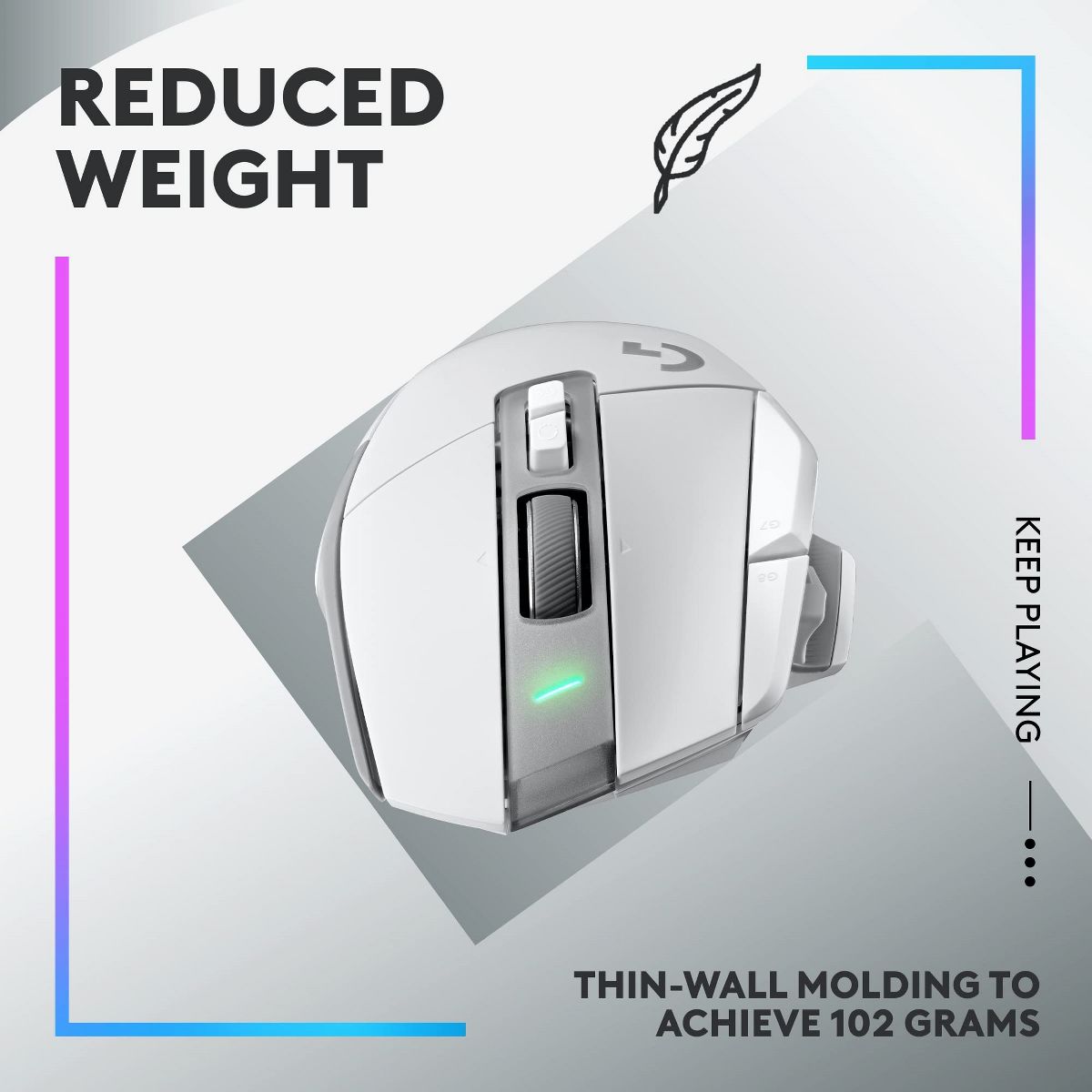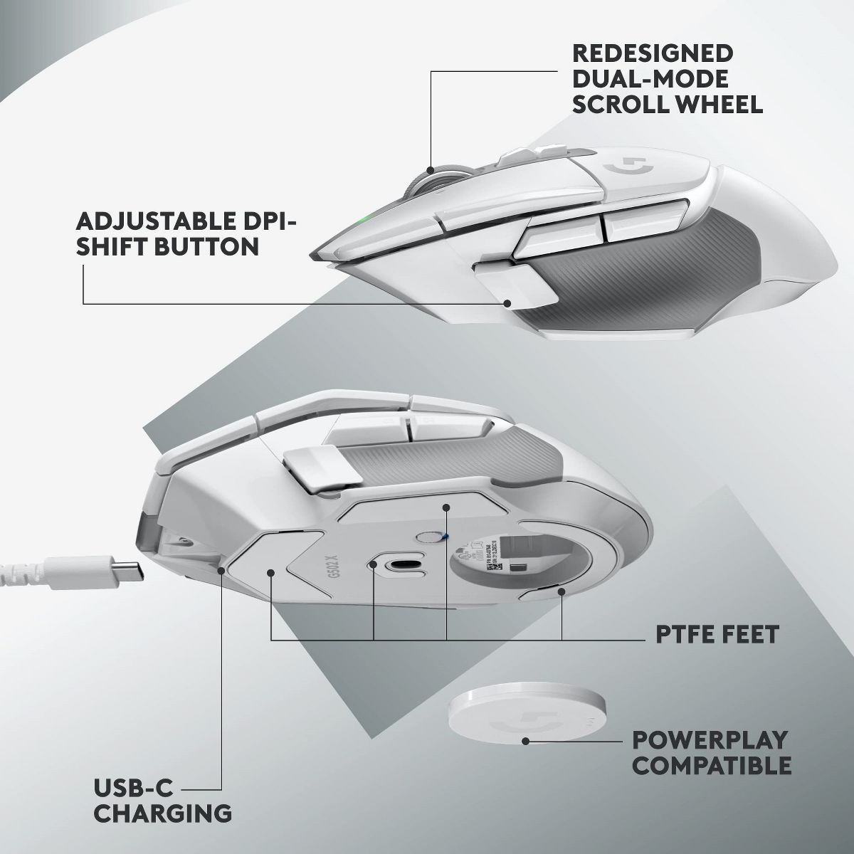 The world's most popular gaming mouse -now reinvented and redesigned. G502 X LIGHTSPEED features the latest innovations in gaming technology, including LIGHTFORCE: an all-new hybrid optical-mechanical switch technology. Now, incredible speed and reliability, as well as precise actuation, are one. Complete with updated LIGHTSPEED wireless with 68% faster response rate, redesigned dualmode scroll wheel, thin-wall molding, and optimized battery for up to 140 hours of gaming.