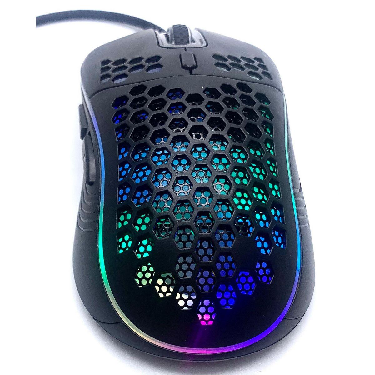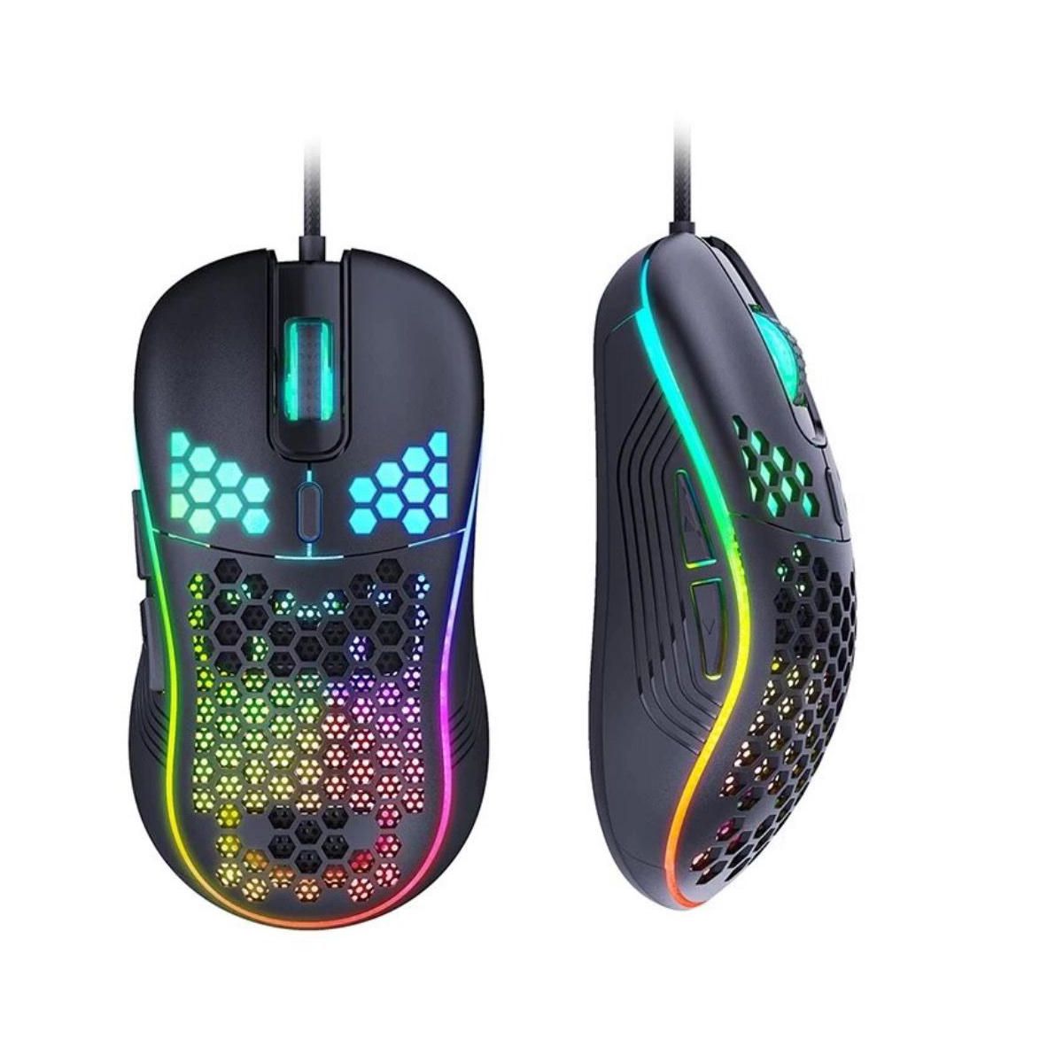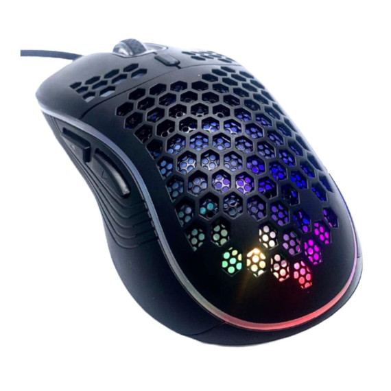 The Honeycomb Shell Gaming Mouse is a lightweight and durable mouse with a honeycomb shell design that provides fast heat dissipation and a comfortable grip. It features 6 programmable buttons, 8 adjustable RGB light effects, and office/game mode switching. Compatible with Windows and Mac. WAVE / BERATHING / RESPONSE / NEON / TAIL / STEADY / COLORFUL STREAMING / OFF. Easily adjust different lighting modes or switch off the light by DPI-/+ button, ERGONOMIC & HONEYCOMB FANCY DESIG- Ergonomic design and Honey comb surface provides comfortable grips, comfort grip hand-feeling and better gaming experience. RGB gaming mouse is plug and play.