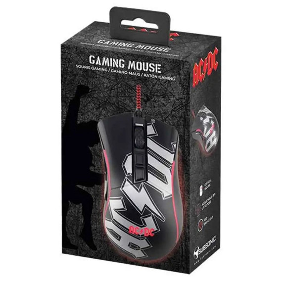Subsonic Wired Ergonomic Optical Gaming Mouse with Scroll Wheel, 7 Programmable Buttons, 7200 DPI, for PC (AC/DC®) in Black