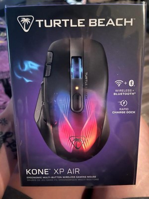 The Turtle Beach Kone XP Air Wireless Customizable Gaming Mouse with Charging Dock combines the beloved Kone shape with lag-free 2.4GHz Wireless + Bluetooth® connectivity. Boasting 29 programmable inputs, the Kone XP Air delivers rich customization options in a stunning translucent shell filled with LEDs for immersive 3D lighting. An Owl-Eye™ 19K DPI optical sensor combines with TITAN Optical Switches to provide a responsive and ultra-fast experience for a competitive edge game after game. The stylish charging dock provides five hours of play time with just 10 minutes of charging and 4 RGB lighting zones.