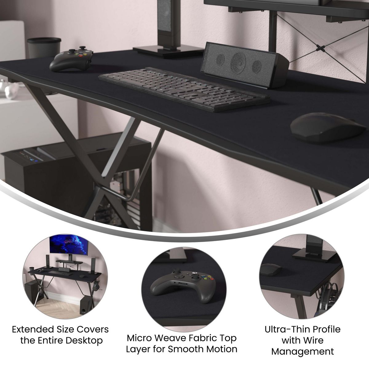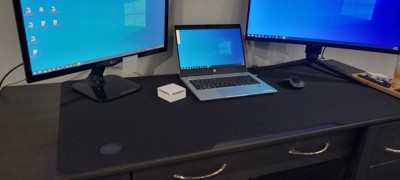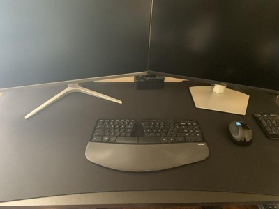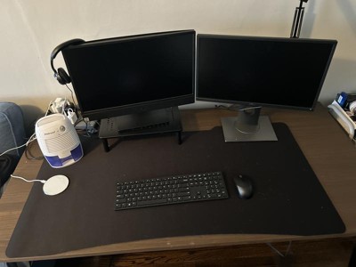 The right equipment is essential for everyone. Level up your PC gaming experience or improve your efficiency working from home with this mega sized mouse pad. The micro weave cloth surface provides smooth glide without sacrificing control while the anti-slip rubber backing keeps the mouse pad securely in place. This 45" x 29" x 0.12" mousepad also helps to protect your desktop from scratches, nicks and scuffs. A cable management hole lets you maintain a tidy workspace and keep your desktop clear of cord clutter. The oversized design is perfect for a gaming mouse or large rollerball mouse, full size keyboard and more so you always have what you need at hand. Your new mouse pad ships ready to use for your convenience and wipes clean with a damp cloth for low maintenance upkeep.