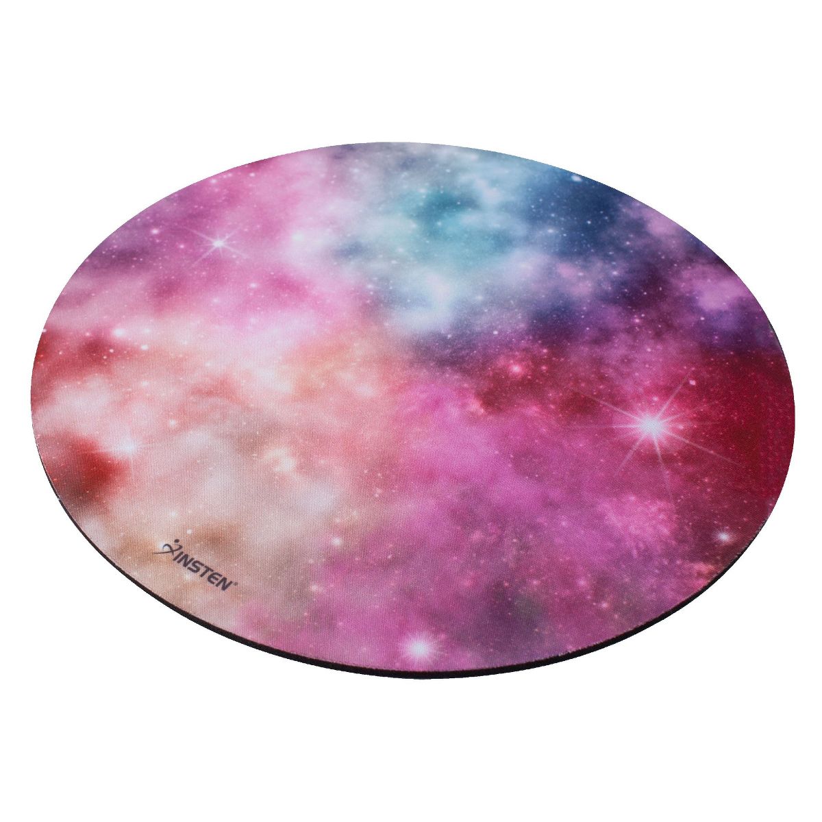 Insten Nebula Galaxy Mouse Pad Round, Non Slip Rubber Base, Smooth Surface Mat, For Home Office Gaming, Pink Purple