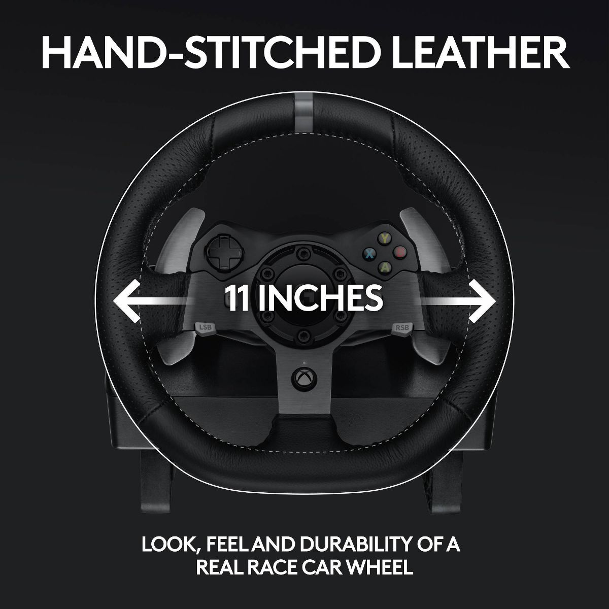 G920 Driving Force is the definitive sim racing wheel for the latest Xbox Series X|S, Xbox One™ and PC titles. With realistic dual-motor force feedback and helical gearing for quiet, smooth steering. On-wheel controls and paddle shifters are easy to access so you can make crisp, precise gear transitions. The separate pedal unit gives you natural, responsive control, with a nonlinear brake pedal that mimics the feel of high-performance vehicles. Driving Force is built for comfort and durability with hand-stitched leather and stainless steel components. Built-in clamps and bolt points keeps Driving Force mounted securely to a table or racing rig, minimizing shifting or wobbling during aggressive maneuvers.