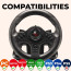 The SV450 Universal Steering Wheel from SUPERDRIVE offers you a playful 180° rotation angle that adapts to your driving habits. It is fully programmable and has 3 levels of sensitivity adjustable directly from the steering wheel. Super practical, the SV450 racing wheel is equipped with suction cups to be fixed on a desk or any flat surface. Compact at only 9 in. (23 cm), it is easy to store._