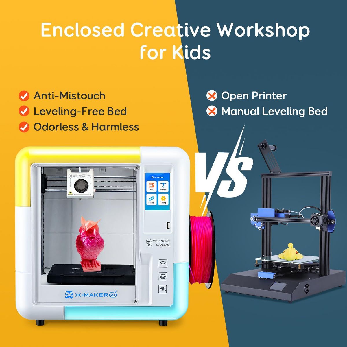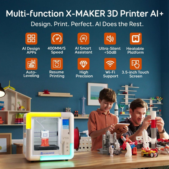 Unlock endless creativity with this fully enclosed 3D printer designed for kids, beginners, and families. A safe, quiet, and user-friendly choice for home learning and early STEM education, it features a 3.5-inch color touch screen, an auto-leveling bed, 15 built-in design apps, and 0.05 mm printing precision. With noise under 50 dB, it makes a fun and educational gift for young creators and curious beginners. 【Available Options】Standard Printer (includes 1 filament); AI Printer (includes 1 filament); AI Printer + 4 Filaments; Standard Printer + 8 Filaments. Filament quantity varies by selected option—please review before checkout.