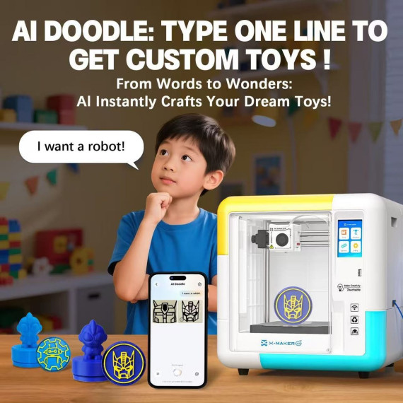 Unlock endless creativity with this fully enclosed 3D printer designed for kids, beginners, and families. A safe, quiet, and user-friendly choice for home learning and early STEM education, it features a 3.5-inch color touch screen, an auto-leveling bed, 15 built-in design apps, and 0.05 mm printing precision. With noise under 50 dB, it makes a fun and educational gift for young creators and curious beginners. 【Available Options】Standard Printer (includes 1 filament); AI Printer (includes 1 filament); AI Printer + 4 Filaments; Standard Printer + 8 Filaments. Filament quantity varies by selected option—please review before checkout.