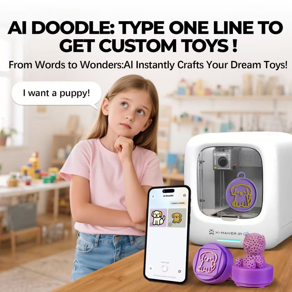 Bring imagination to life with the JOY 3D printer, a kid-friendly and family-focused creative tool designed to inspire hands-on learning through play. With 1,500+ printable models, 15+ mini design apps, and 0.05 mm printing precision, it encourages creativity, problem-solving, and early STEM education in a fun and approachable way. The fully enclosed design, built-in HD camera, and plug-and-play setup make it safe and easy for kids and parents to explore together at home. Quiet, compact, and thoughtfully designed, JOY makes a meaningful STEAM toy and gift for birthdays, holidays, and family learning time. 【Available Options】Standard JOY Printer (includes 1 filament); AI JOY Printer (includes 1 filament); AI JOY Printer + 4 Filaments; Standard JOY Printer + 8 Filaments. Filament quantity varies by selected option—please review before checkout.
